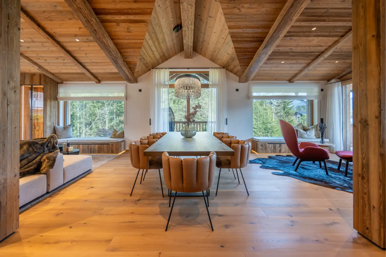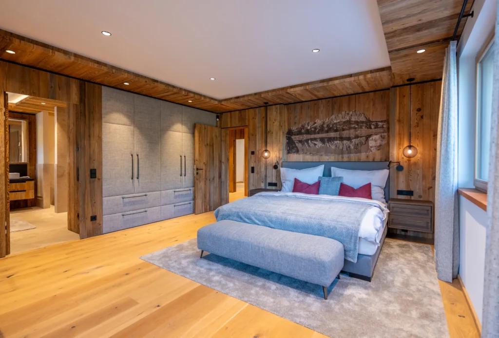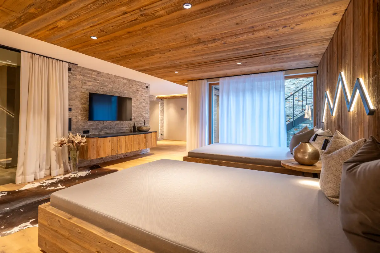 The chalet has four magnificent bedrooms, each equipped with its own bathroom. Noble materials and stylish design create a top-class retreat of the highest class for peaceful nights.