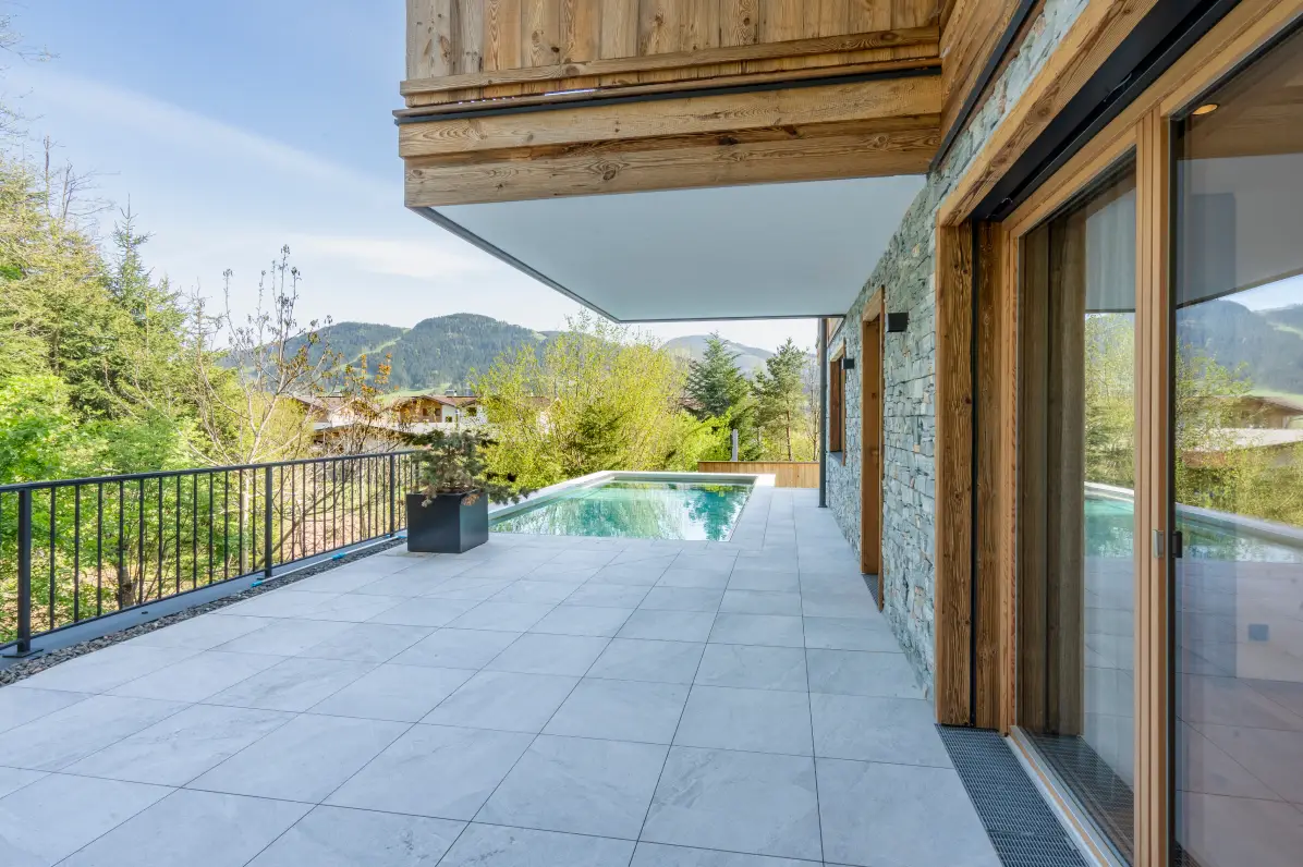 Another highlight awaits you on the upper floor: a private pool on a spacious terrace. Dive in and enjoy the surrounding landscape. Here you can relax and enjoy your privacy.
